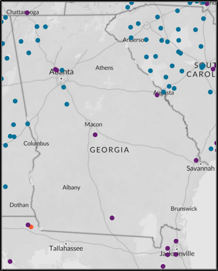 Figure 2. Estimated PFAS Contamination Sites in the state of Georgia [1]