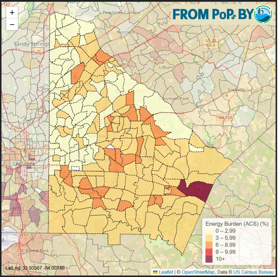 Figure 1. Map Showing Monthly Energy Burden for Individual Census Tracts within DeKalb County