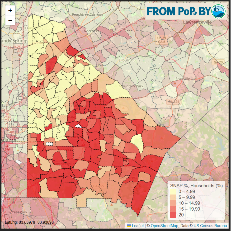 Even without considering the energy bills, it is important to have a basic understanding of the economic conditions of the community. For example, how many customers are receiving Social Security Income or how many are unemployed across the County? For the DeKalb Transition Plan, we mapped: